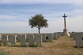 Sur le site de ce cimetière se trouvaient des tombes de soldats du Commonwealth enterrés par les Allemands en 1917. Le reste du cimetière est composé presque entièrement de tombes apportées d'un cimetière plus ancien du même nom ou des champs de bataille des environs après l'armistice. Une grande partie de ces tombes concentrées étaient celles de soldats de la 16e division irlandaise tombés en mars 1918.