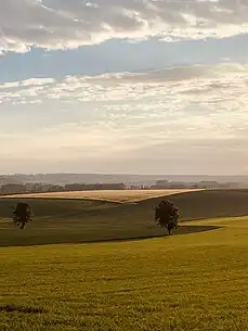 L'occupation des sols de la commune, telle qu'elle ressort de la base de données européenne d’occupation biophysique des sols Corine Land Cover (CLC), est marquée par l'importance des territoires agricoles (93,2 % en 2018), une proportion identique à celle de 1990 (93,2 %). La répartition détaillée en 2018 est la suivante : terres arables (68,1 %), prairies (21,4 %), forêts (6,8 %), zones agricoles hétérogènes (3,7 %)[13]. L'évolution de l’occupation des sols de la commune et de ses infrastructures peut être observée sur les différentes représentations cartographiques du territoire : la carte de Cassini (XVIIIe siècle), la carte d'état-major (1820-1866) et les cartes ou photos aériennes de l'IGN pour la période actuelle (1950 à aujourd'hui)[Carte 1].