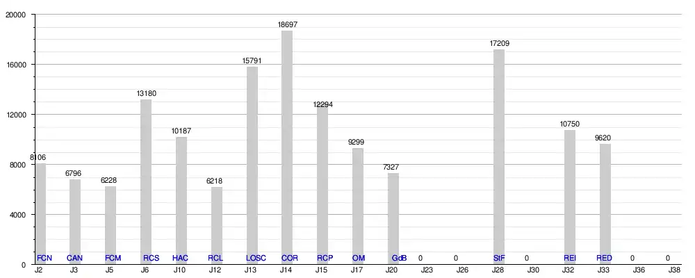 | 19 | Le Havre AC | 25 | 38 | 22 | 0,53 |