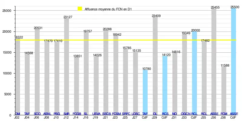 - de 341 311 spectateurs en 19 rencontres de Division 1, soit une moyenne de 17 964/match.