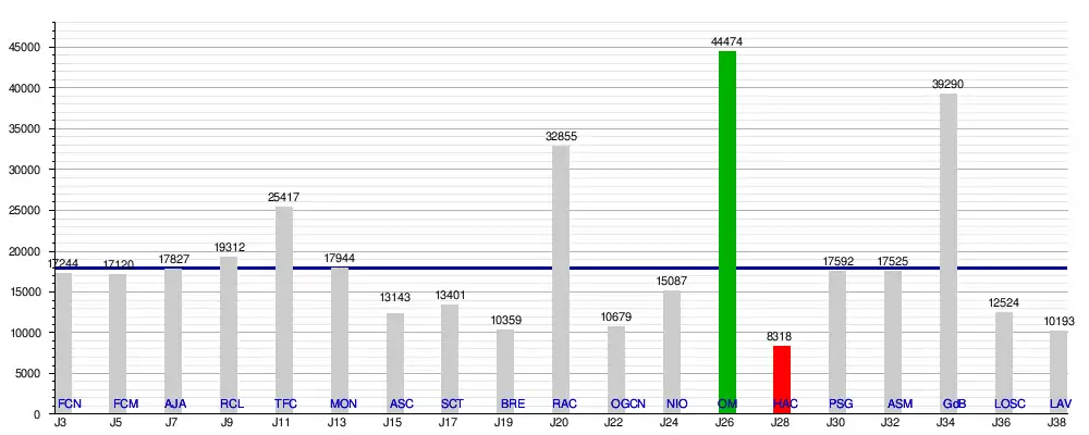 342 006 spectateurs ont assisté à une rencontre au stade cette saison, soit une moyenne de 18 000 par match.