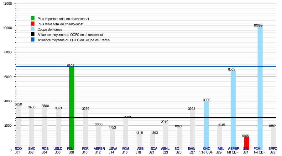 - de 45 200 spectateurs en 17 rencontres de Division 2, soit une moyenne de 2 658/match.