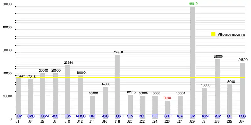 Affluence du Racing Club de Lens à domicile, lors de la saison 1991-1992