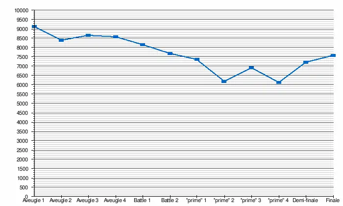 | Samedi (Battle 2) 20:50 – 23:20 | 7 658 000 | 34,7 % | [23] |
