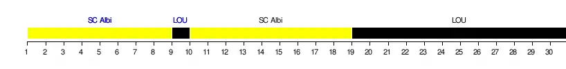 | SC Albi | 1 | 1 | 1 | 1 | 1 | 1 | 1 | 1 | 2 | 1 | 1 | 1 | 1 | 1 | 1 | 1 | 1 | 1 | 2 | 2 | 2 | 2 | 2 | 2 | 2 | 3 | 3 | 3 | 3 | 3 |