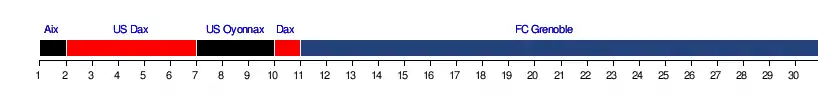 | FC Grenoble | 9 | 4 | 2 | 6 | 4 | 4 | 4 | 2 | 3 | 2 | 1 | 1 | 1 | 1 | 1 | 1 | 1 | 1 | 1 | 1 | 1 | 1 | 1 | 1 | 1 | 1 | 1 | 1 | 1 | 1 |