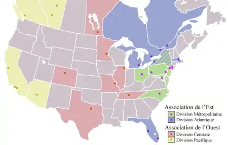 | Division Pacifique | Division Centrale | Division Atlantique | Division Métropolitaine |