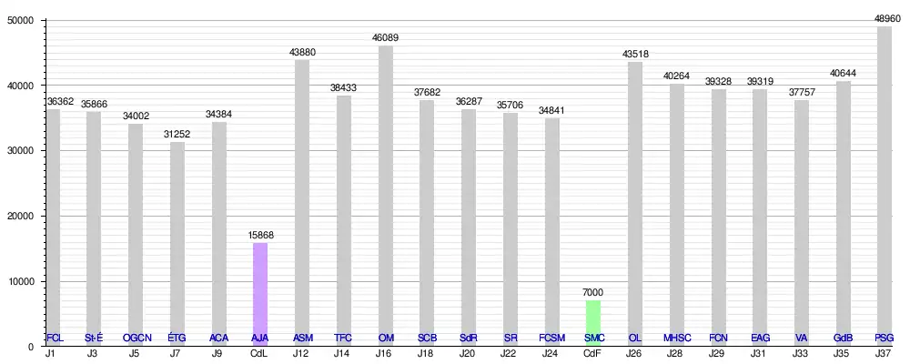 | 10 | SC Bastia | 49 | 38 | 15 | -14 |