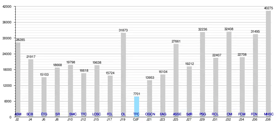 Moyenne d'affluence au stade toutes compétitions confondues : 22 675