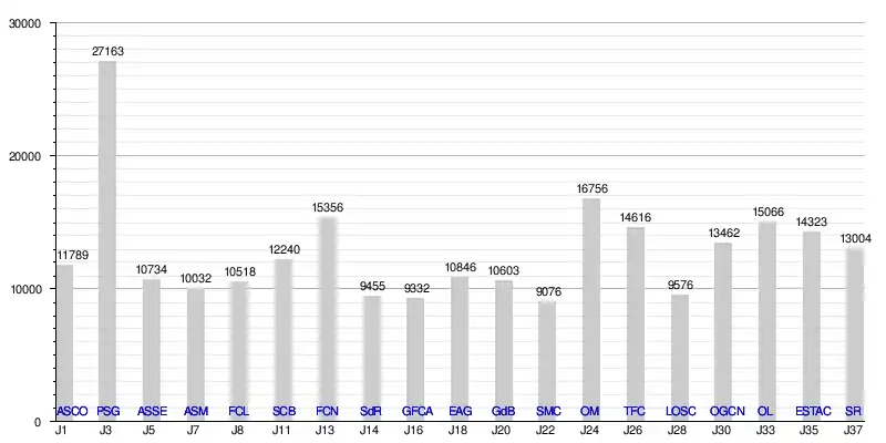 - « Affluences Ligue 1 », sur lfp.fr (consulté le ).