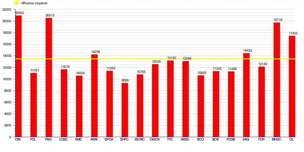 - Affluence moyenne à domicile : 13 482 spectateurs
