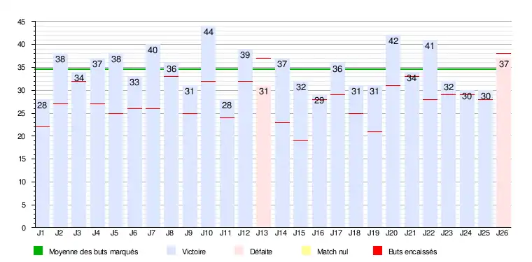 Ce graphique représente le nombre de buts marqués lors de chaque journée du championnat.