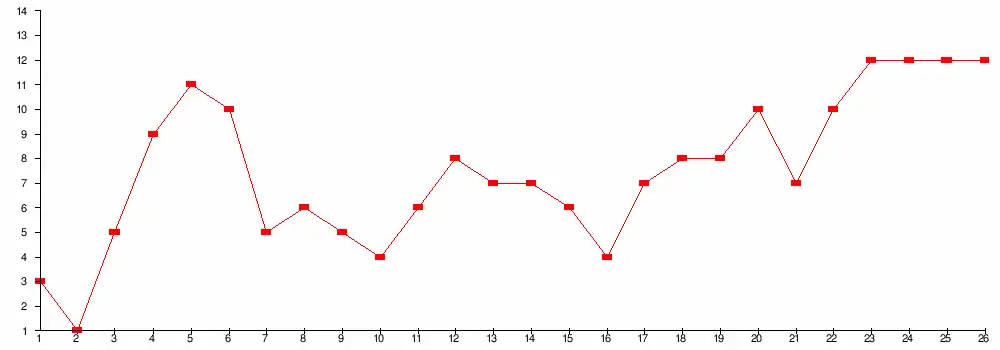 | Coupe d'Europe | Quart de finale 2e de la poule avec 18 pts (3V-1N-2D) |