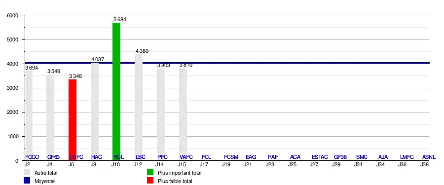 * : Affluence communiquée par le club à domicile mais non validée par le service « Stades » de la LFP, ou journée de championnat pas encore disputée intégralement