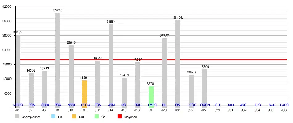 | 2 | Girondins de Bordeaux - Dijon FCO | Coupe de la Ligue BKT - Seizième de finale | 29/10/2019 | 11 391 |