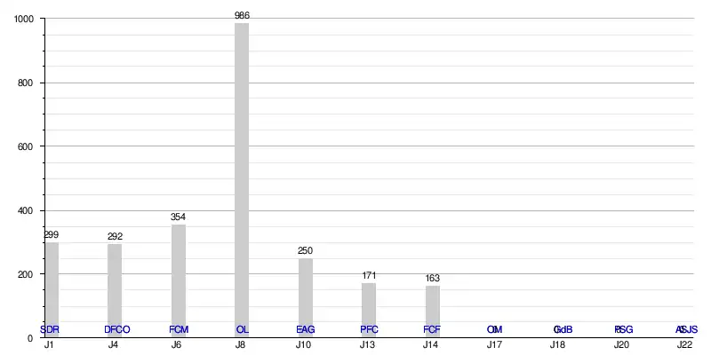 | 22/02/2020 | Journée 16 | Olympique lyonnais | Ext. | 0-5 | - | 4e | 1328 |