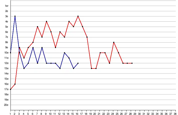 | Buts encaissés | 2 | 5 | 2 | 0 | 5 | 3 | 0 | 0 | 0 | 17 |