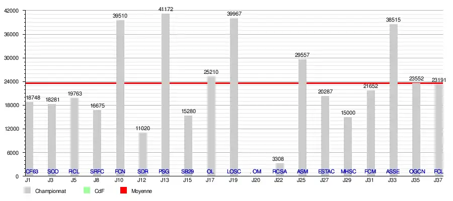 | 1 | Girondins de Bordeaux - RC Strasbourg | Ligue 1 - 22e journée | 23/01/2022 | 3 308 |