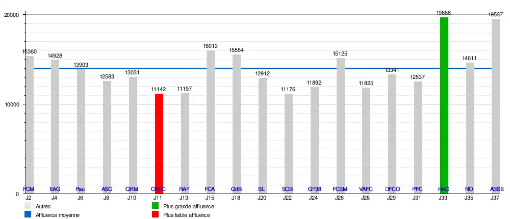 | Samedi | 19h00 | 11 | Niort FC | Dom. | Kyeremeh | 18 | 6e | 11 142 | Deminguet, Obiang, Mendy, Brahimi | ||
