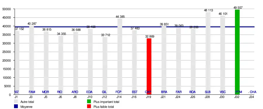 Ce graphique représente le nombre de spectateurs présents au Estádio José Alvalade XXI lors de chaque match à domicile.