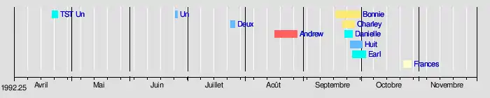 | Saison cyclonique 1992 dans l'océan Atlantique nord | |||||||||||||||||||||