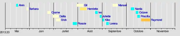 | Saison cyclonique 2013 dans l'océan Pacifique nord-est | |||||||||||||||||||||