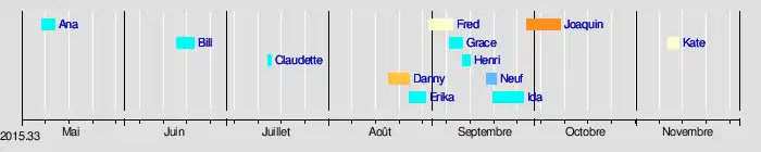 | Saison cyclonique 2015 dans l'océan Atlantique nord | |||||||||||||||||||||