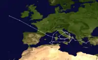 - (en) Met Office (@metoffice), « There's some fine weather across the UK today, but it's more unsettled near the Mediterranean Storm Minerva is bringing frequent thunderstorms, which are set to continue for the next few days The crosses on the image below show recent lightning strikes in the area ⚡ », sur Twitter, (consulté le ).