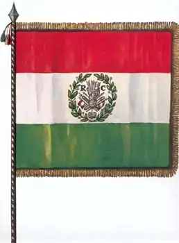 Lors des précédentes sessions, les débats autour du drapeau ont vu de nombreuses positions s'afficher : au lieu du vert, les jacobins italiens préférèrent le bleu du drapeau français alors que les membres fidèles à la papauté privilégièrent le jaune du drapeau des États pontificaux. Sur le blanc et le rouge il n'y eut aucun débat[20]. Le vert fut choisi en définitive comme une solution de compromis[20]. Ce choix du vert fut probablement inspiré par le drapeau militaire de la légion lombarde[21].