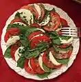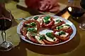 La salade caprese (insalata caprese ou caprese, salade Capri, en italien[1]) est une spécialité culinaire traditionnelle de la cuisine napolitaine et de la cuisine italienne, originaire de l'île de Capri en Campanie, salade composée et antipasti à base de tomate, mozzarella, basilic, et huile d'olive, aux couleurs nationales de l'Italie (verte, blanche, rouge)[2].