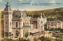 L'hôtel des Bains est inauguré, fin 1893, l'eau salée étant amenée de Miserey par un saumoduc d'environ 10 km[8],[9]. L'activité thermale s'arrête après la Première Guerre mondiale[4].