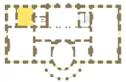 - l'abaissement de la hauteur de la fenêtre, en étendant une corniche sur le mur nord de la salle.