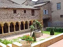 - le cloître du Xe siècle et sa galerie du XIIe siècle, voûtée avec des ogives à colonnes doubles en pierres dorées[24],