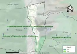 L’inventaire des zones naturelles d'intérêt écologique, faunistique et floristique (ZNIEFF) a pour objectif de réaliser une couverture des zones les plus intéressantes sur le plan écologique, essentiellement dans la perspective d’améliorer la connaissance du patrimoine naturel national et de fournir aux différents décideurs un outil d’aide à la prise en compte de l’environnement dans l’aménagement du territoire. Deux ZNIEFF de type 1[Note 3] sont recensées sur la commune[20] : le « massif du Burat-Bacanère » (8 318 ha), couvrant 15 communes du département[21] et la « rivière de la Pique, entre Luchon et la Garonne. » (143 ha), couvrant 16 communes du département[22] et deux ZNIEFF de type 2[Note 4],[20] :