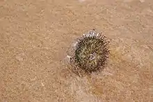 Ces oursins font partie des « oursins collecteurs » : ils portent souvent des objets (débris, algues) au-dessus d'eux pour se protéger.