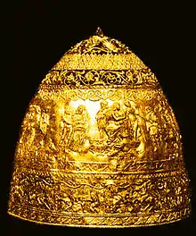Cependant, Antoine Héron de Villefosse, conservateur chargé des sculptures grecques et romaines, émet rapidement des doutes sur l'authenticité de l'objet, de même qu'Adolf Furtwängler, conservateur de la glyptothèque de Munich[32]. Salomon Reinach leur emboîte le pas[33], à la différence de son frère Théodore qui soutient publiquement la thèse de l'authenticité à plusieurs reprises[cf. 23]. Le différend familial devient une querelle d'experts entre l'école française, qui refuse de se reconnaître dupée, et l'école allemande, qui critique la légèreté des vérifications des Français. À la suite de l'enquête menée par Charles Clermont-Ganneau, la mystification est démasquée : la tiare est un faux de l'artiste Israël Rouchomovsky.