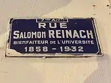 Salomon Reinach, de son nom complet Salomon Hermann Reinach, né le à Saint-Germain-en-Laye (Seine-et-Oise) et mort le à Boulogne-Billancourt, est un archéologue[3] français, conservateur du musée de Saint-Germain et professeur d'histoire de l'art à l'École du Louvre. C'est aussi un grand Intellectuel, engagé dans la défense de la République de la fin du XIXe siècle, notamment à l'époque de l'affaire Dreyfus, à l'Entre-deux-guerres, .