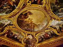 Au-dessus de chaque porte, d'autres peintures sont visibles : Allégorie à la naissance de Louis XIV de Louis-Gabriel Blanchard et La renommée annonçant aux quatre parties du monde les merveilles du règne de Louis XIV de François Bonnemer.