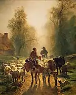 | 2902 | ![]() | Constant Troyon Le départ pour le marché Huile sur toile, 260,5 × 211 cm Saint-Pétersbourg, musée de l'Ermitage | ||