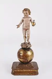 On trouve également représenté l'Enfant Jésus portant l'orbe de sa main gauche, ou le Christ bénissant mais sans l'orbe, parfois remplacé par un livre.