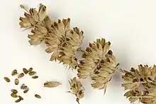 Les tiges, ligneuses à la base, sont plutôt herbacées aux extrémités.