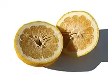 La maturité optimale du fruit est mi-mars à mi-avril au Japon et un mois plus tôt en climat méditerranéen chaud. Il a un péricarpe épais (environ 1 cm) facile à peler, il pèse 250 à 300 g et sa forme est ovoïde dominé par un cou proéminent et marqué (plus large que celui du tangelo Minneola, proche du dekopon)[1],[12],[4],[19]. La pulpe est jaune lumineux parfois un rien oranger, juteuse, avec de nombreuses graines.