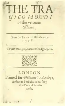 - Samuel Brandon, Virtuous Octavia, The Argument, 1598