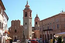 - Collégiale de Santa Maria Assunta (ou collégiale Pieve) située sur la place Alberico Gentili, elle a une décoration en terre cuite attribuée à Enrico Alemanno, de 1421. C’est la seule œuvre des Marches en style gothique fleuri. À l’intérieur se trouve la chapelle des morts de la Première Guerre mondiale, décorée par Adolfo de Carolis.