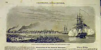 La prospérité de la ville fut stoppée net quand elle fut bombardée le par un sloop de guerre américain, dans le cadre d'un conflit entre les États-Unis et les habitants de la ville au sujet du contrôle des routes de transit; le bombardement est effectués en représailles à une blessure faite à un consul américain en poste au Nicaragua[1]. Si la ville fut détruite, il n'y a eu aucune perte humaine et le site est reconstruit. L'année suivante, le flibustier américain William Walker s'y installa et s'autoproclama président du Nicaragua mais il en fut chassé par les Marines. La ville perdit alors de son importance avec l'arrêt de la compagnie de transport de Vanderbilt.