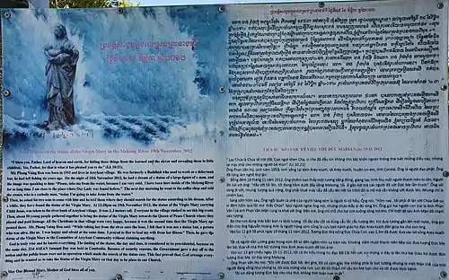 - Notice informative affichée en khmer, vietnamien et anglais, dans le sanctuaire, ainsi que le feuillet à disposition des visiteurs.