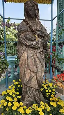 Pour mettre cette statue à l'honneur, elle a été placée sur un promontoire de 8,10 mètres de haut, à côté de l'église. Elle est en fonte de fer et a été fabriqué en France : elle porte sur son socle la mention "Union Artistique de Vaucouleurs (Meuse)". Elle représente Notre-Dame de Lourdes, celle qui apparue 18 fois à Ste Bernadette Soubirous en 1858. Elle date du début du XXe siècle[3].