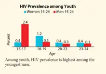 La prévalence de l'infection à VIH, oscille autour de 1 % chez les adultes, mais 23 000 personnes ont été nouvellement infectées[10].