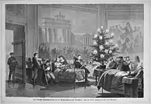 Réalisé entre 1760 et 1770 dans la région de Darmstadt, le tableau du peintre allemand Nikolaus Hoffman (1740-c.1823)[15] intitulé Weihnachtsbescherung (« Cadeaux de Noël») constitue l'un des premiers exemples répertorié figurant la coutume du sapin de Noël décoré et de la célébration de Noël en tant que fête familiale domestique à tendance profane, avec des cadeaux pour les enfants qui sont le centre de la fête[16].