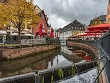 Le centre-ville de Sarrebourg, avec le ruisseau Leuck (Leukbach). Octobre 2016.